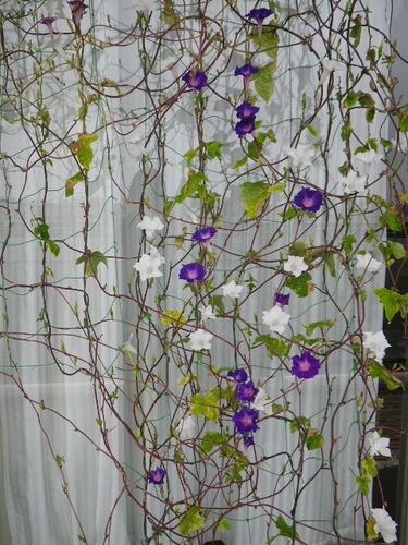 先日の台風で葉はほぼ全滅 スッカスカのカーテン しかし、わき芽も少し出てきました もしかして多年草だった?って思ったけど間違いなく一年草です 紫のお銀、八重咲きと一重咲きがあります 夕方になると色が変わるミラクル〜 そして昨日初めてお銀とゆき姫…