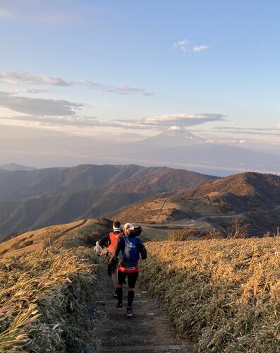 今年最初で最後のレースITJ。無事完走しました! 前日の西伊豆の夕日も完璧! 夜は星空が綺麗! そしてITJならではのこの景色。 進むべき稜線が見渡せる。 そして夕日時間の富士山。 このときの強風がすごかった。バリバリ言ってたもの。 達磨山では日没時刻…