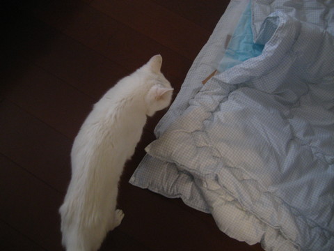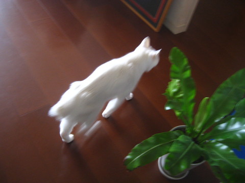 でも割と動き回ってます。夜中にずいぶん大きな声で鳴いてるなぁと思ったら、ベッドに登ってきていて耳元で鳴いていたのにはビックリ。