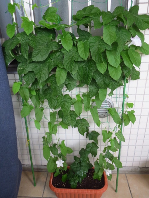 去年は夜の間、ダンボールで覆って暗闇を作っていました。今年は実験の意味もあってそのまま育ててきたけれど・・・。