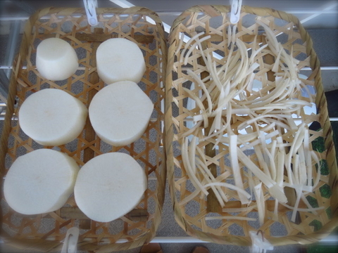 2015-02-11 ちょい干し大根 おいしい before after 午前10時〜午後3時まで干しました 水にお酒と塩麹、生姜薄切りとねぎの青いとこがなかったからセロリ入れて 水からちょい干し大根と鶏肉を煮る 浮いてくるアクはていねいに取ります 仕上げにセリとレモン 大根トロトロ〜 下茹でなしでもえぐみ、大根臭さもない 初心者向けの干し野菜は白菜、大根、きゅうりだそう 騙されたと思ってちょい干ししてみてください