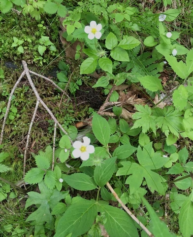 ちっこいシロバナノベニイチゴの花がいっぱい来月になれば赤い実がなりますね