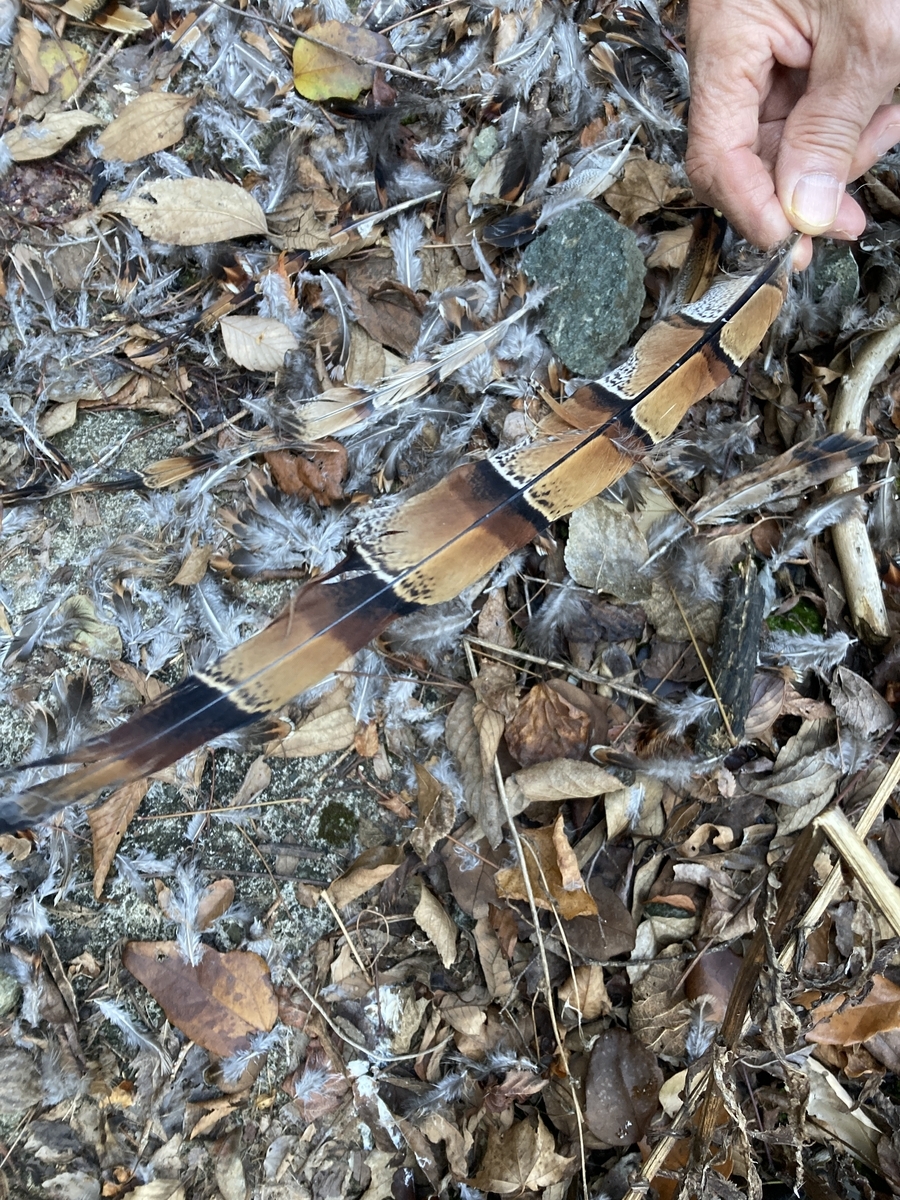 長い尾羽もあって帽子やザックに挿して帰ったメンバーさんも。