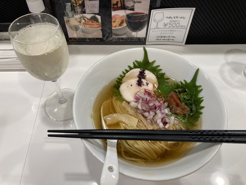 ラーメンとワインでいい気分に。次は赤ワインも試したい〜